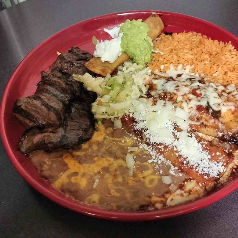 Choose two items: Beef, Chicken or Cheese • Enchilada | Taco | Tostada | Pork Tamal | Chile Relleno